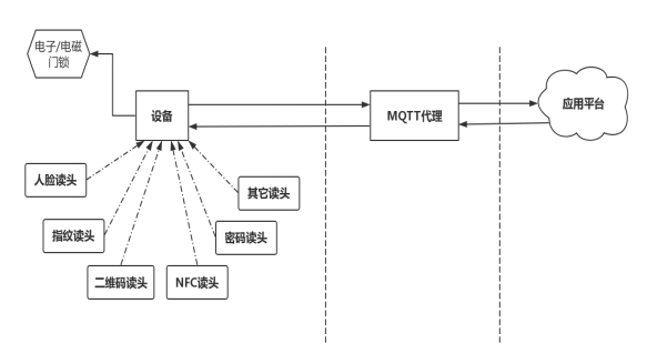 # 📘 VF-MQTT 协议文档 V1.1.37-13 # 一、概述 ## 1.1 文档简介 本文档提供一套直接访问设备的接口规范,用于推送和获取设备信息。使用者购买设备后,可根据本接口说明进行自定义开发,构建完整的门禁系统或相关应用系统。 **核心功能** 本协议文档涵盖以下核心功能模块: | 功能模块 | 说明 | |---------|------| | **设备管理** | 远程配置设备参数、网络设置、系统升级、设备控制等 | | **用户管理** | 用户注册、修改、删除、查询,支持批量同步操作 | | **凭证管理** | 人脸凭证、IC卡、二维码等多种认证方式的添加与删除 | | **权限管理** | 用户通行权限的配置与同步 | | **记录上报** | 通行记录、报警信息、设备状态等实时上报 | | **信息传递** | 心跳、日志、门磁状态等信息的主动上报 | **通信协议** 接口使用 **MQTT(Message Queuing Telemetry Transport)** 通信协议,具有以下特点: - **轻量级**:基于发布/订阅模式,协议开销小,适合物联网设备 - **双向通信**:支持设备与服务器之间的双向实时通信 - **可靠性**:支持QoS(服务质量)等级,确保消息可靠传输 - **灵活性**:可对接各种通用的MQTT代理(Broker),如EMQ X、Mosquitto、RabbitMQ等 **快速开始** 1. **准备MQTT代理**:部署MQTT Broker,配置设备接入参数 2. **设备接入**:配置设备连接MQTT服务器,确保设备在线 3. **接口调用**:根据本文档接口规范,通过MQTT Topic进行消息收发 4. **业务集成**:将设备功能集成到自有业务系统中 ## 1.2 应用场景 当需要对接自己的业务系统时,可以通过使用接口通过MQTT协议直接与设备通讯。 **系统架构示意**  图1\.1\-1 MQTT代理业务 上图展示了典型的MQTT通信架构: - **设备端**:智能终端设备(人脸识别门禁机) - **MQTT代理**:消息中间件,负责设备与业务系统之间的消息转发 - **业务系统**:客户自有的管理平台或应用系统 - **通信方式**:设备与业务系统通过MQTT协议进行双向通信 ## 1.3 接口规范 接口使用MQTT协议,分为上行与下行: 上行:是指设备上发消息给后台或应用。 下行:是指后台或应用下发消息给设备。 通信中间通过MQTT代理,消息包含消息topic与消息内容,格式如下: **消息topic** 消息标题,不管是上行还是下行,发送指令和返回指令的规则是”指令”和”指令\_reply”。格式如下: ```text 下行:20211214/cmd/{#deviceSn}/xxxx ``` 对应的返回指令(上行):20211214/cmd/xxxx\_reply ```text 上行:20211214/event/yyyy ``` 对应的返回指令(下行):20211214/event/{\#deviceSn}/yyyy\_reply 注:20211214是接口版本的特定标识,cmd表示由后台或应用主动给设备发送指令,event表示设备主动给后台或应用发送消息或触发事件。 **消息内容** 文本格式的消息内容,内容为Json格式 **发送消息** 发送指令的格式固定,都包含serianNo、deviceSn、data,如: ```json { "serialNo": "00000001af", "deviceSn": "xxxxxxxx", "data": "" } ``` serialNo:消息序列号,10位字符串,包含的字母和数字,必需要有。 deviceSn:设备序列号,设备的唯一地址,用于通讯时保证设备是有效的设备,必须要有。 data:不同的指令对应的 data 内容不一样,可以是任何类型。 **返回消息** 返回消息格式固定都包含serianNo、deviceSn、result、code、message、data,如: ```json { "serialNo": "00000001af", "deviceSn": "xxxxxxxx", "result": 0, "code": "LAN_SUS-0000", "message": "", "data": "" } ``` serialNo:消息序列号,10位字符串,包含的字母和数字。 deviceSn:设备序列号,设备的唯一地址,用于通讯时保证设备是有效的设备。 result :0表示成功,非0表示失败。 code :错误码。 message :出错的原因信息或成功的提示信息, data:不同的指令对应的 data 内容不一样,可以是任何类型。 ## 1.4 注意事项 1. 若调用接口返回提示“参数异常”,请按以下步骤检查: * 检查参数名称是否拼错、参数名称中是否带有空格或回车。 * 检查参数值是否符合规范,如 Int 值未定义、 id 含有数字字母以外的非法字符等。 * Json 中是否多了或少了",请仔细核对每个接口的 消息内容。 ## 1.5 适用范围 此文档适用范围为: 1. 版本号为: v1\.1\.37\-x 及更高版本的设备。版本号中的 X 表示任意数字。 2. <span style="color:red;">弃用的接口将用红色字体标识</span>,<span style="color:orange;">未使用的接口将用橙色字体标识</span>,<span style="color:blue;">某些针对具体设备设备的接口将用蓝色字体标识</span>。 ## 1.6 适配设备 | **设备型号** | **设备名称** | **适配版本** | **备注** | | - | - | - | - | | VF105 | - | VF105-v1.1.37-4626316 | VF105 37版本首版 | # 二、设备管理类接口 ## 2.0 接口概述 设备管理类接口提供对智能终端设备的全方位远程管理能力,是构建门禁系统的核心基础。通过这些接口,管理员可以在不接触物理设备的情况下,完成设备的配置、监控、维护和升级等操作。 ### 功能分类 | 分类 | 接口 | 功能说明 | |------|------|----------| | **安全管理** | 2.1 设置设备密码 | 配置设备登录密码和HTTP接口密码 | | **状态控制** | 2.2 设备禁用/启用<br>2.3 设备重置<br>2.10 远程控制 | 控制设备运行状态、恢复出厂设置、执行远程指令 | | **系统维护** | 2.4 设备升级<br>2.5 设备信息查询<br>2.11 摄像头标定 | 系统升级、获取设备状态、校准摄像头 | | **配置管理** | 2.6 设备配置查询<br>2.7 设置设备配置<br>2.8 网络配置<br>2.9 设置设备时间 | 查询和修改设备配置参数、网络设置、系统时间 | ### 核心能力 **主界面配置**:设置设备屏幕首页显示内容(如欢迎语、公司 Logo、时间日期、
